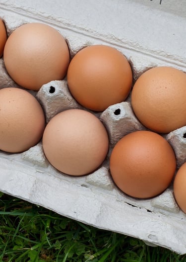 Nossos ovos são produzidos por galinhas caipiras criadas livremente em ambiente natural e saudável.